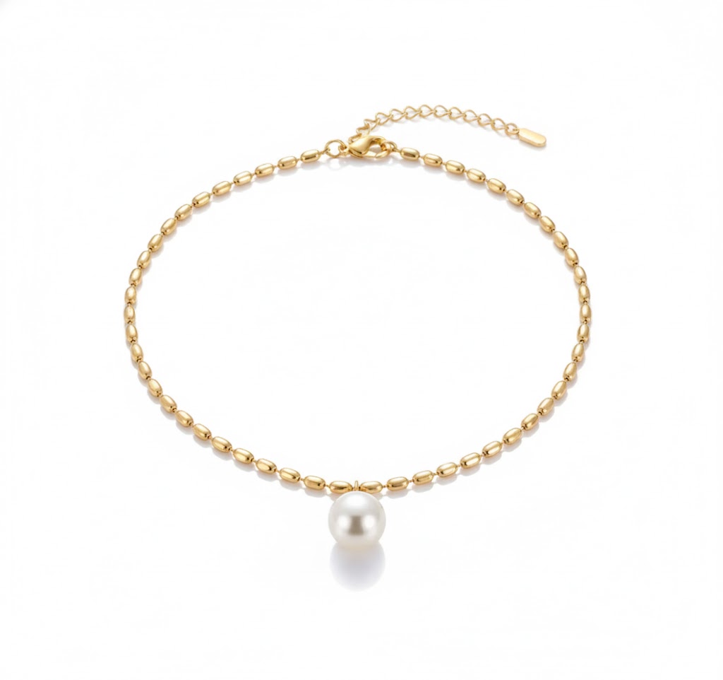 エレガントなゴールドビーズに、一粒パールをあしらった上品なブレスレット。シンプルでありながら存在感があり、日常使いから特別なシーンまで幅広く活躍します。華奢なシルエットが腕元を美しく見せ、どんなジュエリーともコーディネートしやすい万能デザインです。素材は変色しにくく、長期間美しさを保ちます。